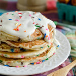 Start your birthday off right with these Funfetti-style Birthday Cake Pancakes. Made with yellow cake mix and colorful sprinkles, these pancakes taste like birthday cake!