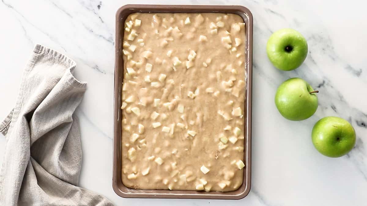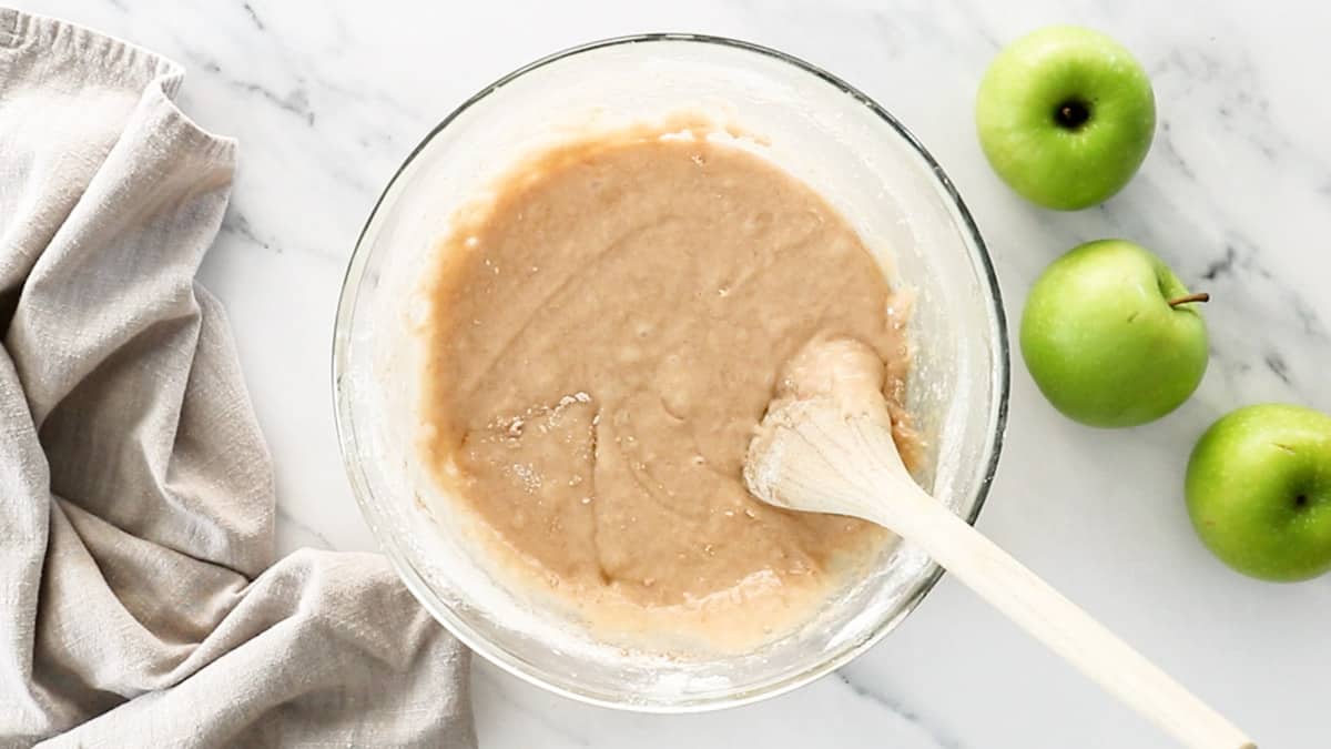 - Fold chopped apples into the batter.