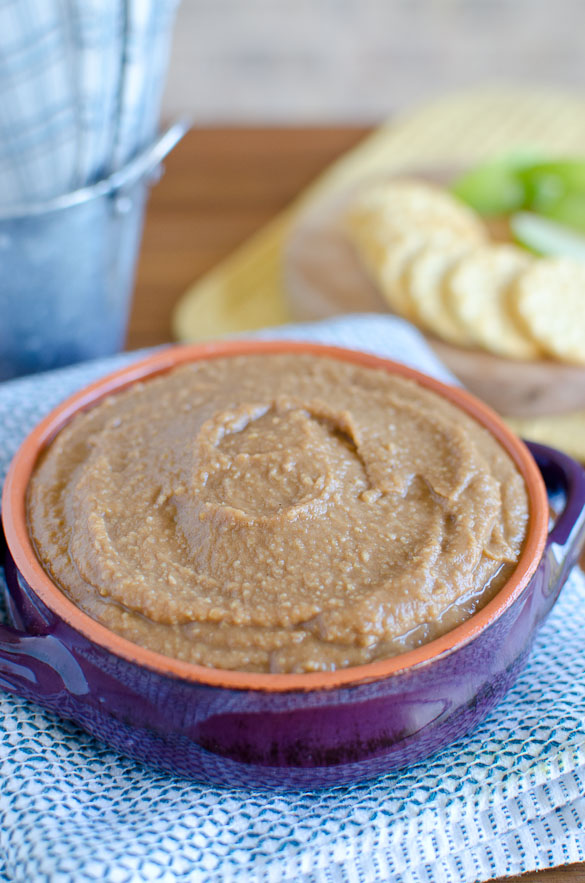 Apple Butter Hummus Dip - a healthy sweet dip for your next party. Serve with apple slices, celery, crackers, cinnamon tortilla chips or graham crackers.Serve it with crackers (yes, it's very good with buttery crackers!), graham crackers, cinnamon tortilla chips, celery, sliced apples, or more!
