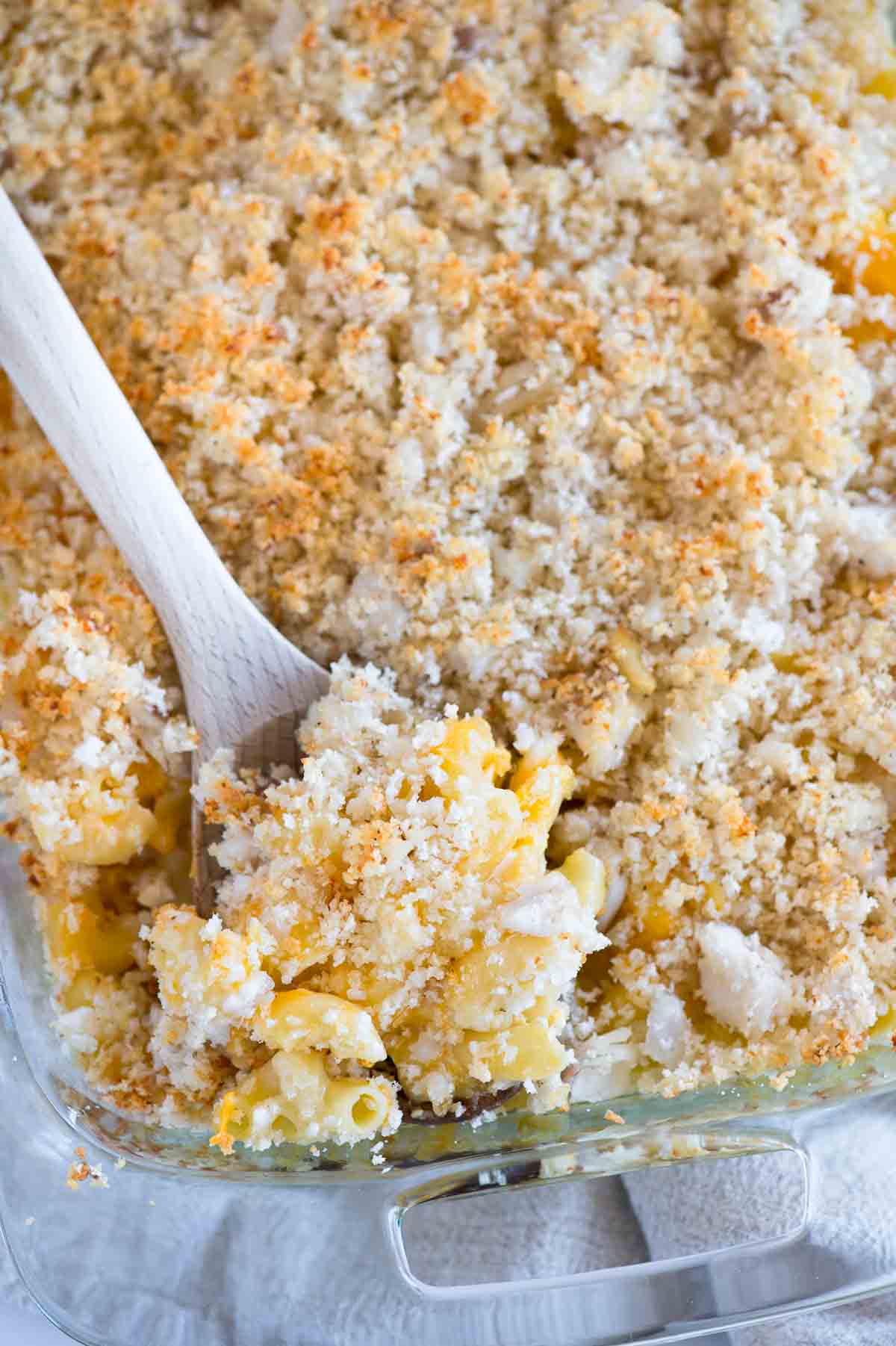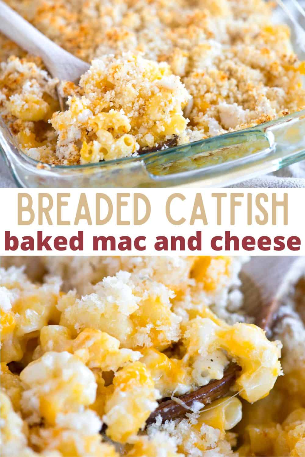 We took our favorite oven baked macaroni and cheese to another level by adding a crispy catfish breadcrumb topping! This catfish recipe is an easy weeknight dinner the whole family will enjoy.