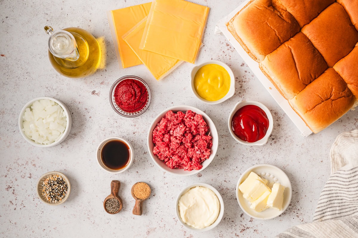 This recipe is simple to make using Hawaiian rolls or any 12-count slider-sized rolls. The remaining ingredients are the basic staples for your favorite classic cheeseburger. Here's what you need: