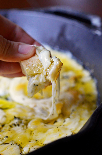 • Broil for 5 to 6 minutes, or until the cheese is bubbly and golden brown. Serve family style by dipping into it with the crusty bread.