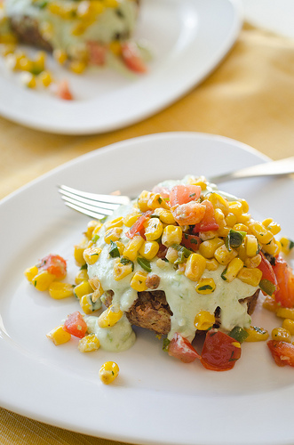 - To serve, top the cooked patties with the corn-relish and avocado cream sauce. Serve immediately.