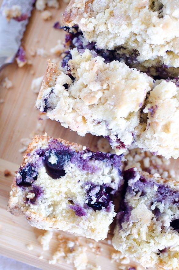 Can I use frozen blueberries? Yes! You can definitely use frozen berries but make sure they are thawed, drained AND dried before adding them to your batter. You do not want the frozen/too cold temperature of the berries, or the extra liquid, to mess with the doneness of the middle of your loaf.