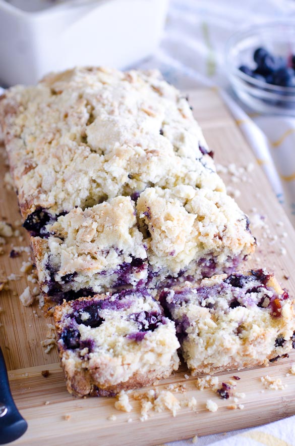 This Blueberry Muffin Bread is my favorite blueberry muffin recipe baked into a loaf pan with a streusel crumb topping. Loaded with blueberries and a crumble topping, you will want to devour every slice of this blueberry bread!
