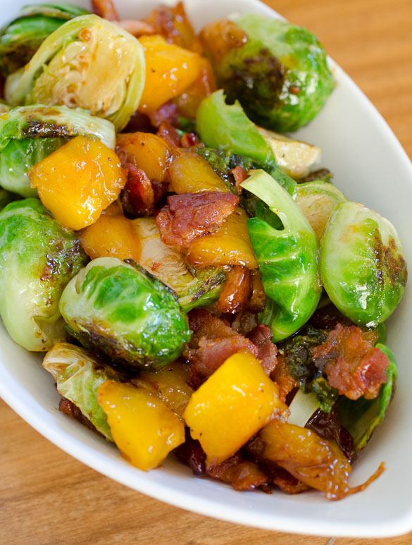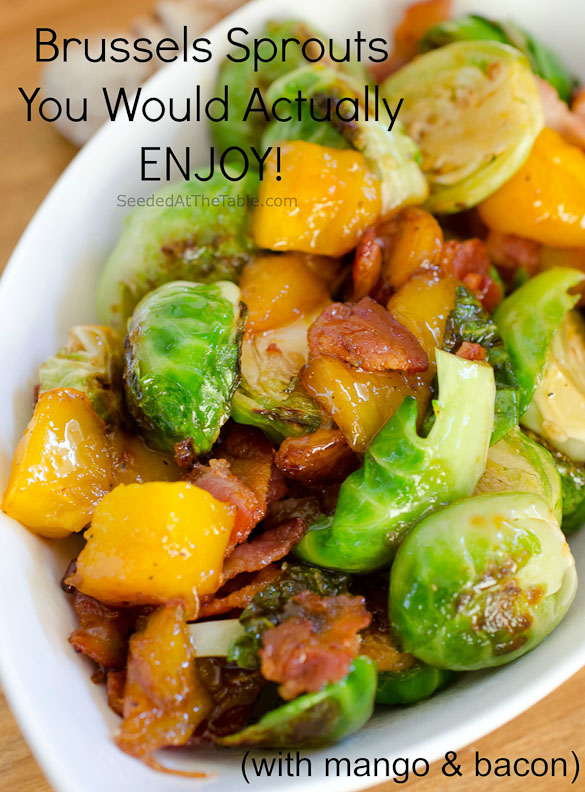 Bacon and Mango....yes 1 million times yes and I love brussels made this way. I am so inspired by this dish you have no idea!!