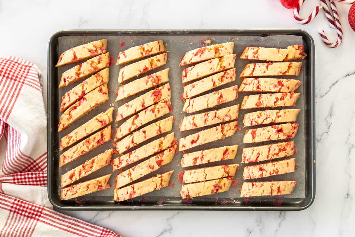 The dough for this biscotti recipe is very easy, and the steps to slice and bake twice are also just as simple!