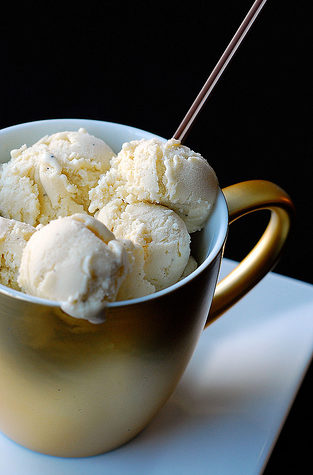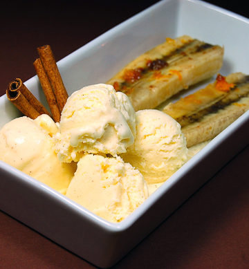 Cinnamon Ice Cream recipe served with Baked Bananas for the ultimate dessert!