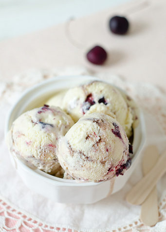 White Chocolate Cherry Ice Cream with Fudge Ripples
