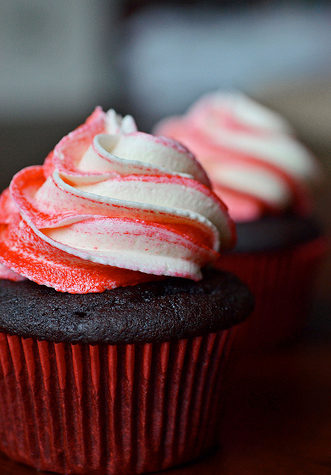 Chocolate Cupcakes with Candy Cane Buttercream Frosting
