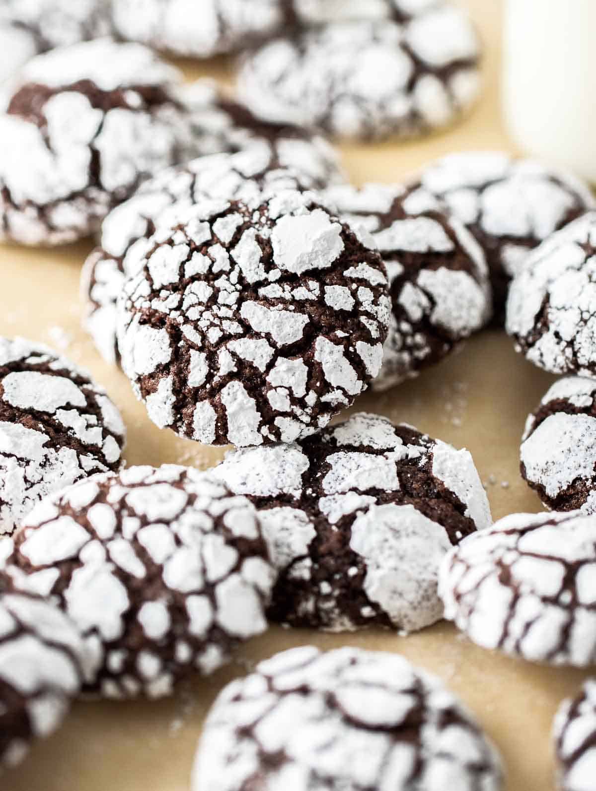 Freeze: Surprisingly, these crinkle cookies freeze very well! The powdered sugar even stays in tact. To freeze, place in a freezer bag and freeze up to 1 month.