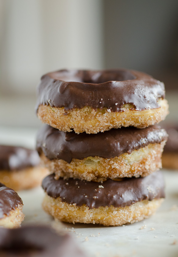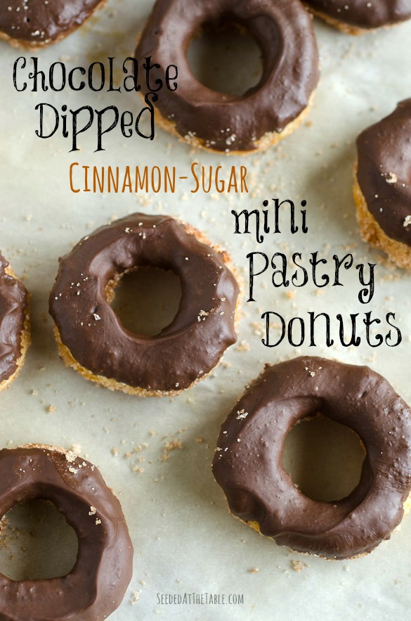 Chocolate Dipped Cinnamon-Sugar Pastry Donuts by SeededAtTheTable.com