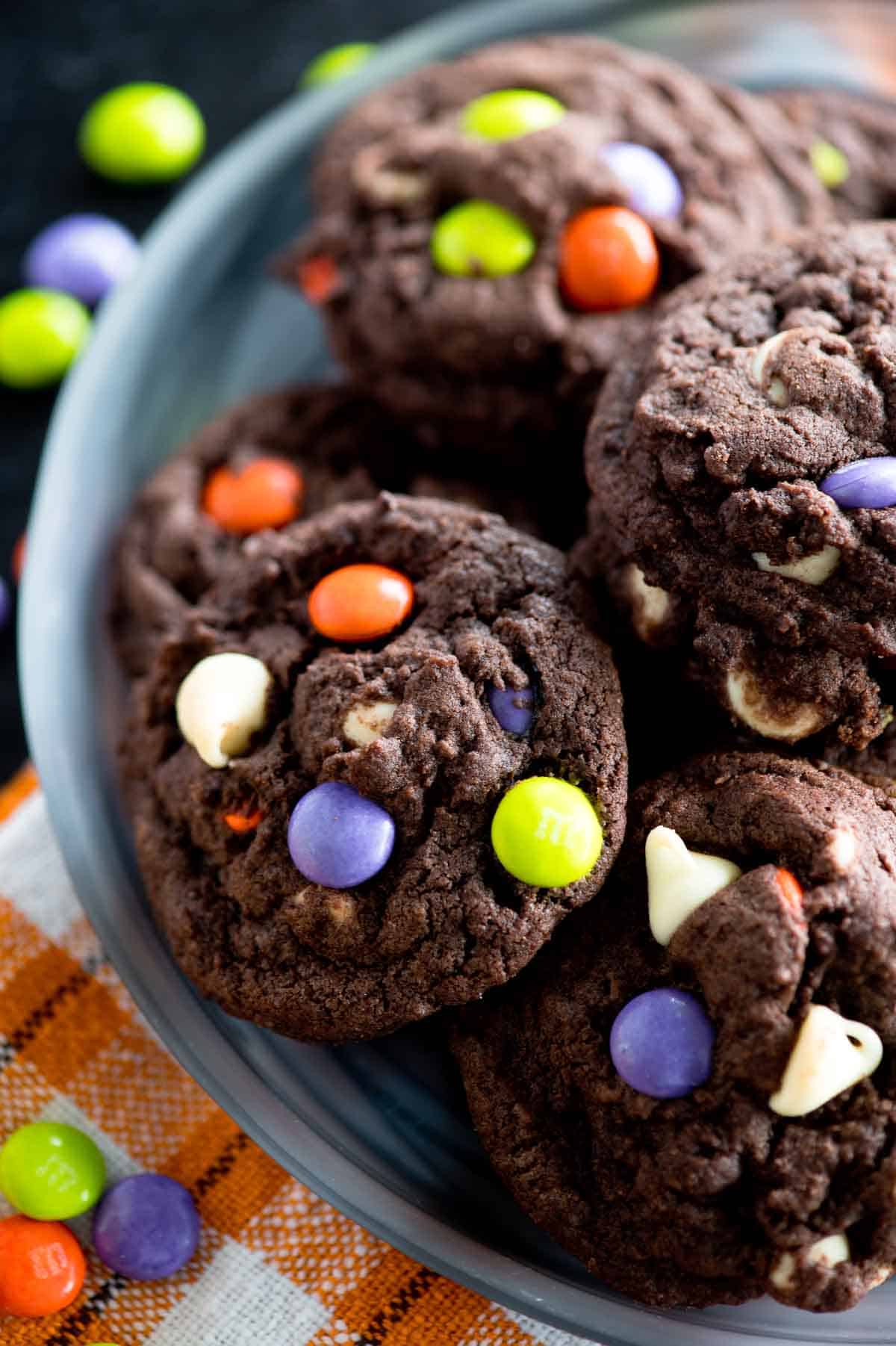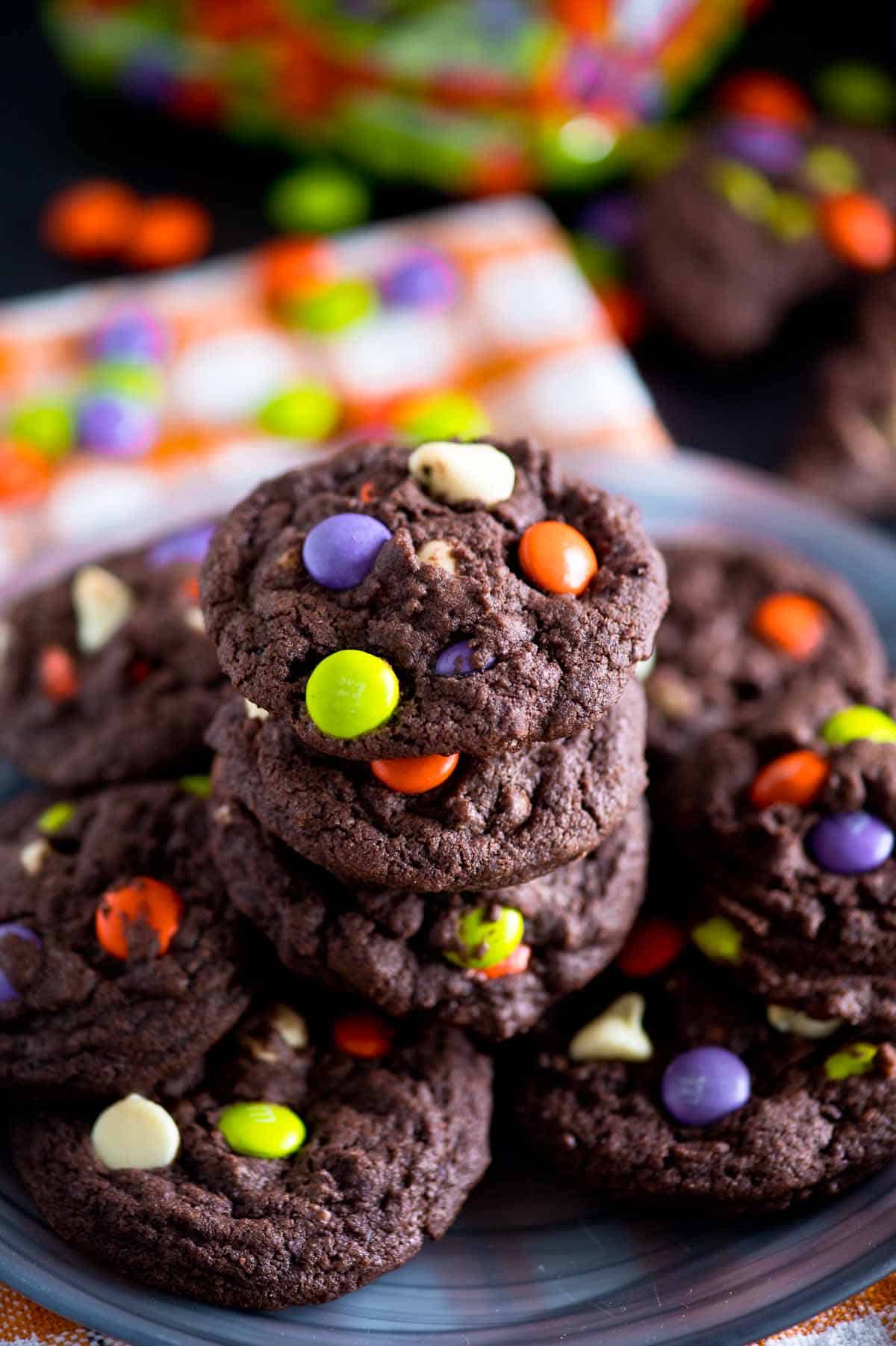 These chewy chocolate Halloween cookies are an easy option to add to your Halloween party table. Ready in just 20 minutes!