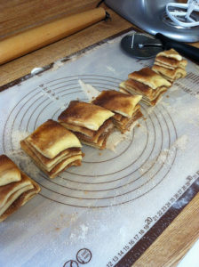 - Slice the dough vertically into six equal sliced strips.