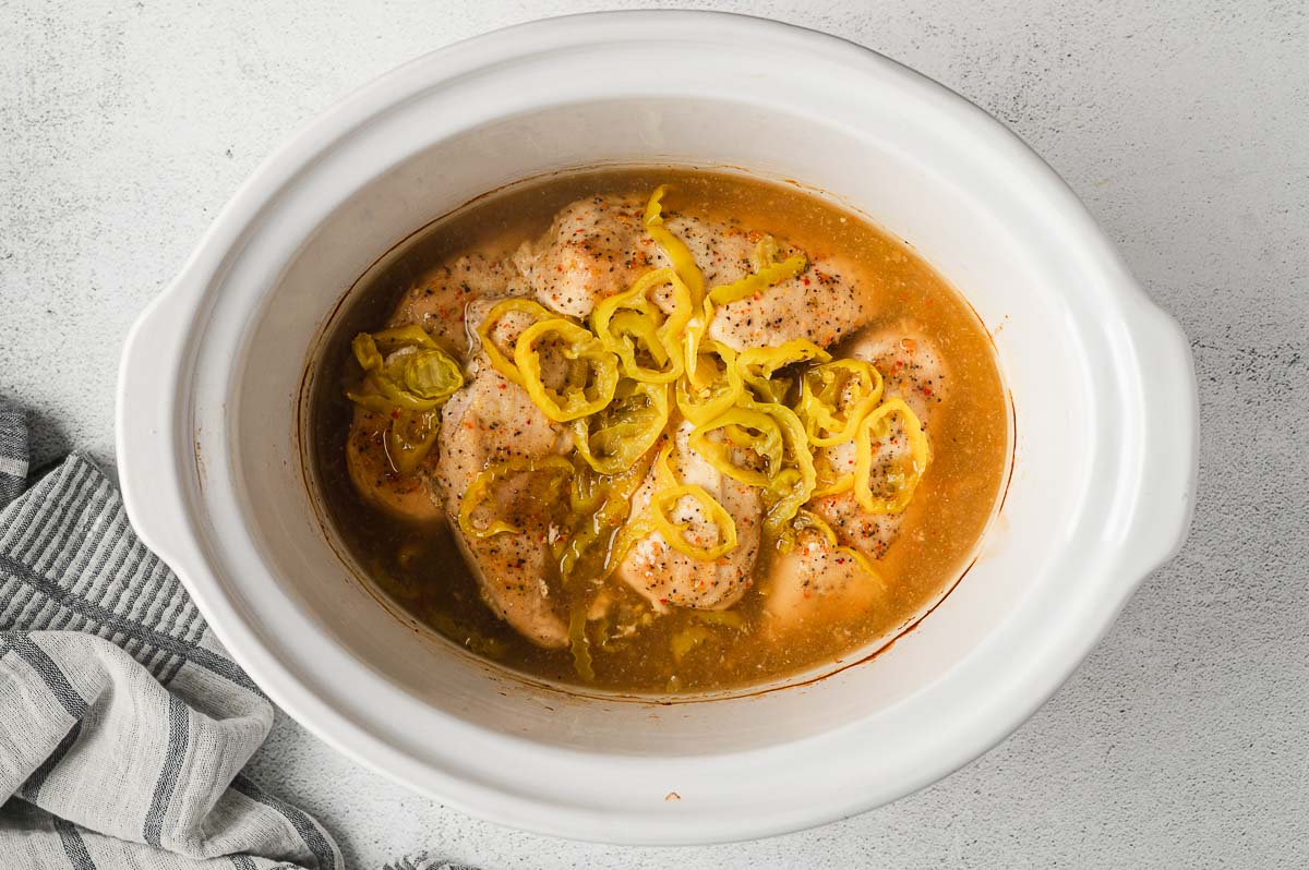 - This recipe calls for only three inexpensive ingredients: chicken breasts, Italian seasoning and a jar of pepperoncini.