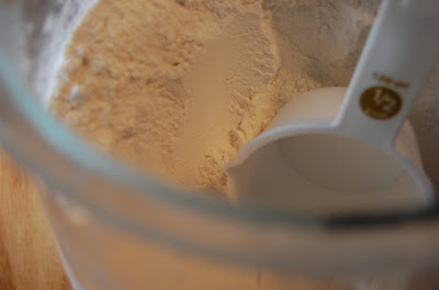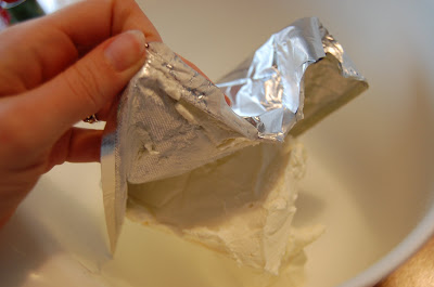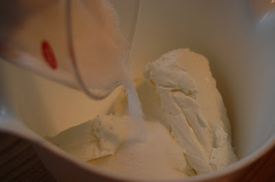 In a large bowl, beat together the cream cheese, sugar, flour, and salt until smooth. If using a mixer, mix on low speed. (I just did it by hand.)