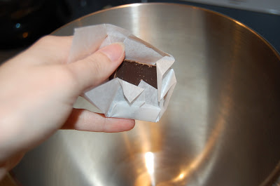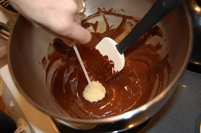 1 lb chocolate, finely chopped - you can use all one kind or half and half of dark, milk, or white (Alternately, you can use 1 lb of favlored coatings, also known as summer coating or wafer chocolate - candy supply stores carry colors, as well as the three kinds of chocolate) I used Baker's chocolate squares.