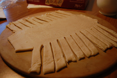 If the dough seems elastic and shrinks back when rolled, let it rest for a few minutes, then roll again. Place the dough on the baking sheet.