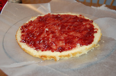Top with another layer, spread with preserves and buttercream and then do the same with a third layer (youโll have used all the jam and have buttercream leftover).