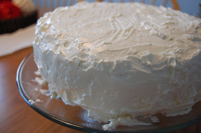 The timing for this cake was perfect since it is a springy cake (both in texture and in season). We were allowed to make variations in flavor and decoration, but the only part I changed was leaving off the coconut (not a big fan).