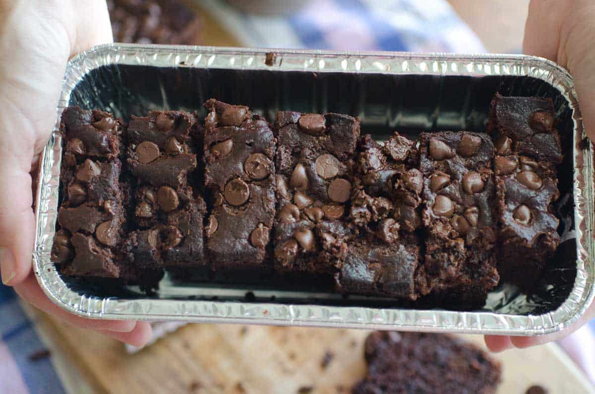 This banana bread is a perfect recipe for gifting. When I bring a meal to a family, I sometimes like to include something for breakfast or a little treat for dessert. This chocolate banana bread could serve as either breakfast or dessert! If you slice it up and place in a small foil pan for delivery, you will have enough to keep almost half the loaf for yourself, too!