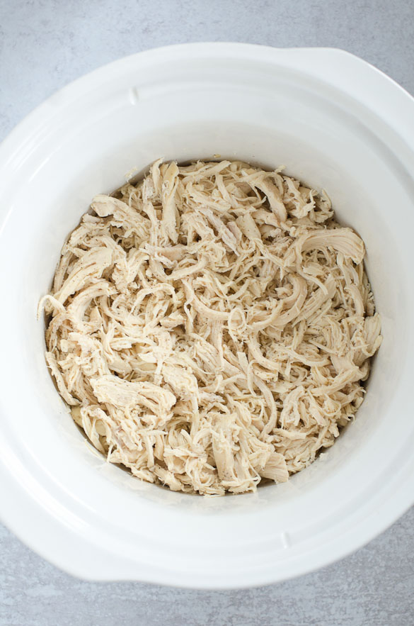 - Cook on low for 5 to 6 hours, or high for 3 to 4 hours until chicken is cooked through and easily shreds. Shred with two forks and use as recipe indicates, or store for later use. (See notes.)