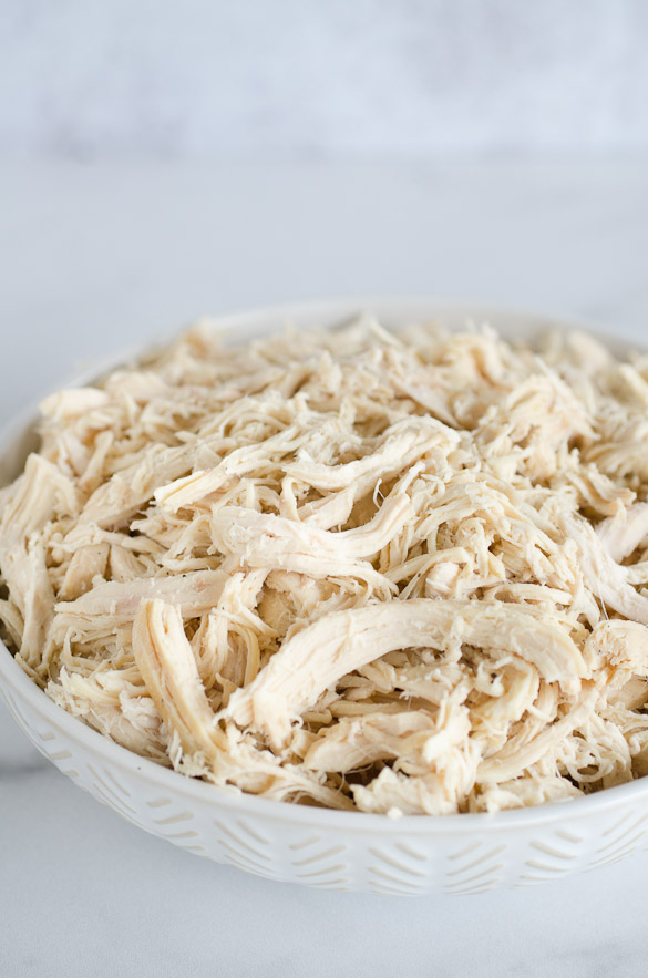 Everyone should know how to make cooked shredded chicken because it is a main ingredient in many dinner recipes. These recipes are much more convenient when you have the cooked shredded chicken ready! Many of my favorite weeknight dinner recipes included 2 to 3 cups of shredded chicken.