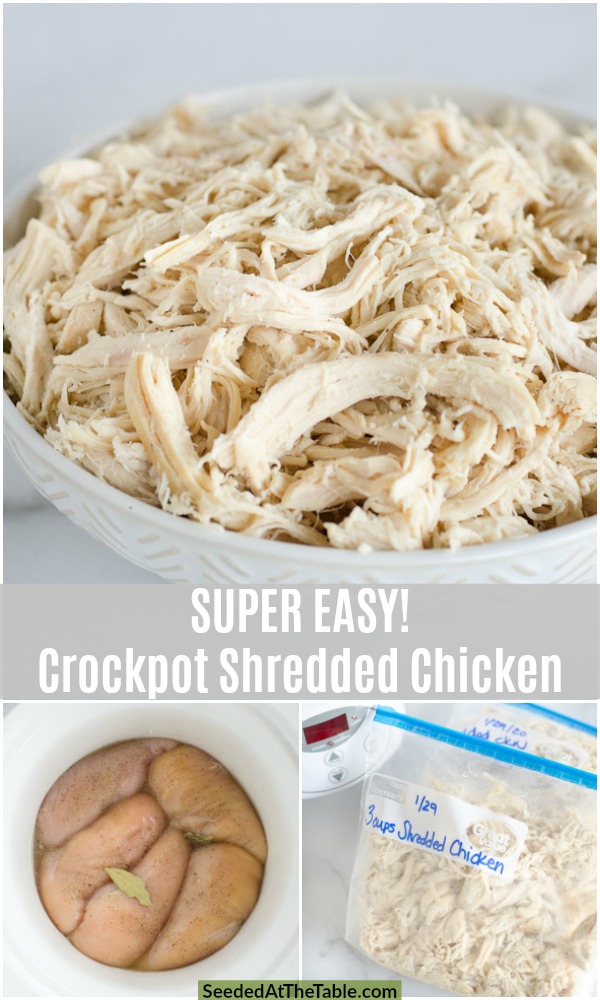 This Crockpot Shredded Chicken recipe is the easiest way to make cooked shredded chicken. One batch is enough to make at least 6 cups of shredded chicken ready for your quick weeknight dinner recipes. Freeze leftovers for later!