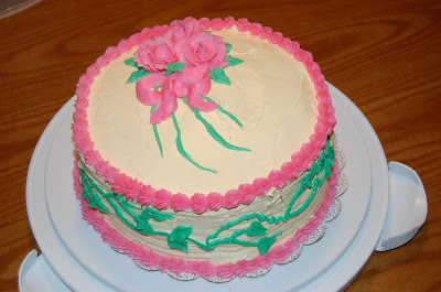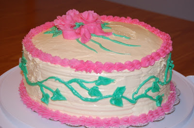 I just got home from my last Wilton Cake Decorating Course 1 class. It's been a fun four weeks. We learned the rest of the Wilton rose and how to make leaves and vines today.