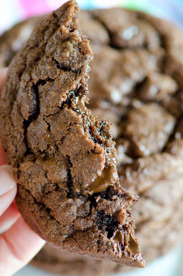 I love love love a good chocolate cookie, especially a DOUBLE chocolate cookie -- a chocolate based cookie with chocolate chips. When you eat them warm, the melty chocolate drips all over your fingers, begging to be licked right up, not wasting any bit of taste.