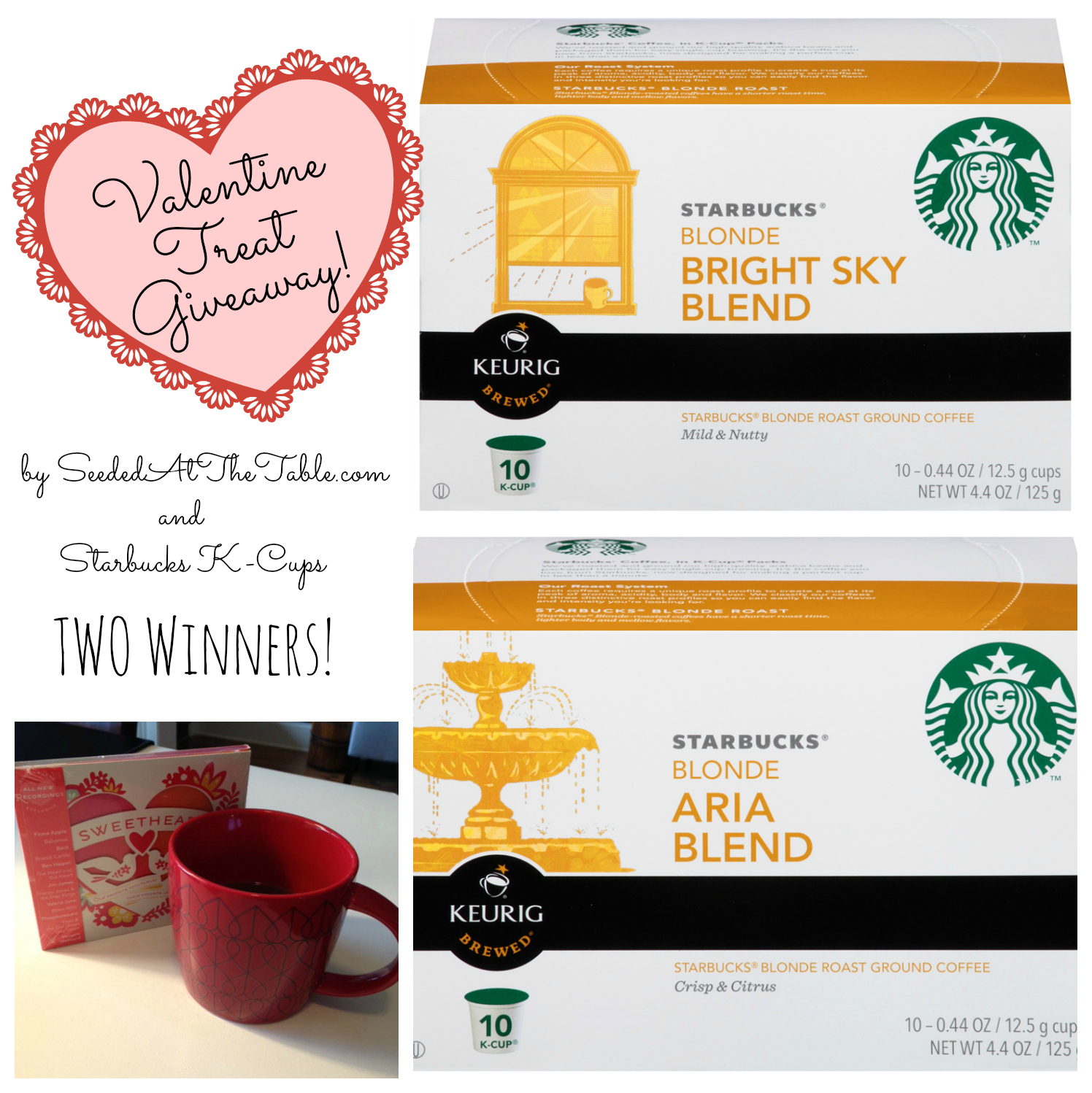 My friends at Starbucks K-Cups® want to help you celebrate Valentine's Day with your special someone, by sitting back with a cup of Starbucks K-Cups® coffee and relaxing with a sweetheart soundtrack in the background. They put together this package for two lucky winners, which includes two packages of my favorite (Blonde roast) blends. See the giveaway widget below for details and to enter for your chance to win.