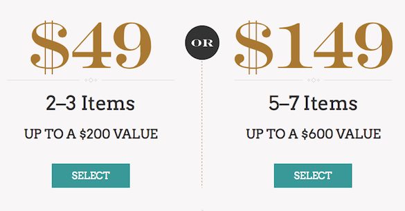 In other words, you can receive 2-3 shirts, pants or dresses for a total of $49, plus shipping. Or, 5-7 shirts, pants or dresses for a total of $149, plus shipping. Not too bad!