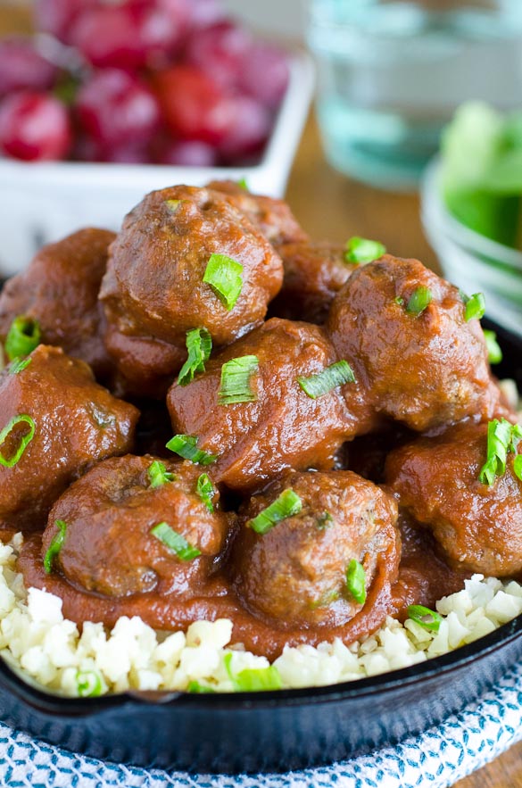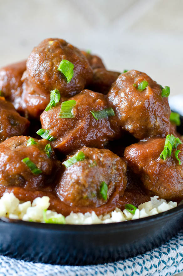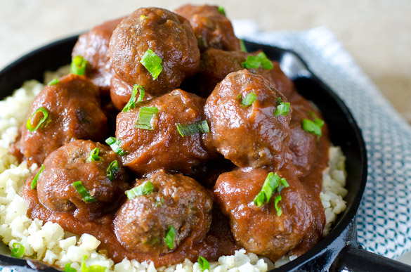 - Combine meatballs and sauce. Serve over rice. (Cauliflower rice for Whole30.)