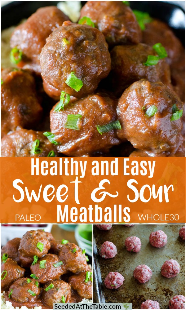 These easy sweet and sour meatballs are healthy meatballs baked in the oven and complimented with a delicious homemade sauce. The most satisfying Whole30 and Paleo meatballs recipe!