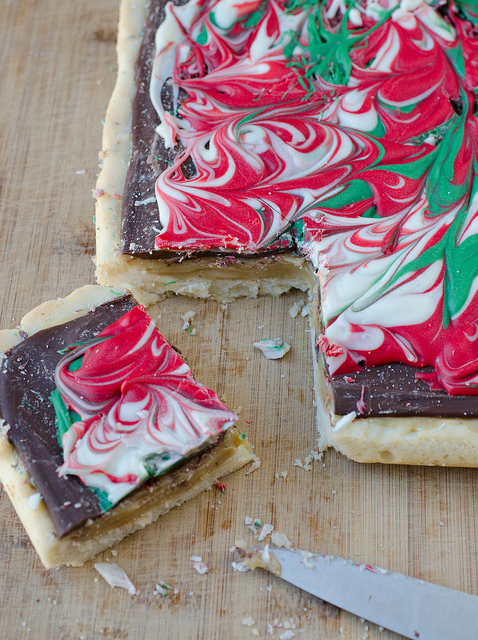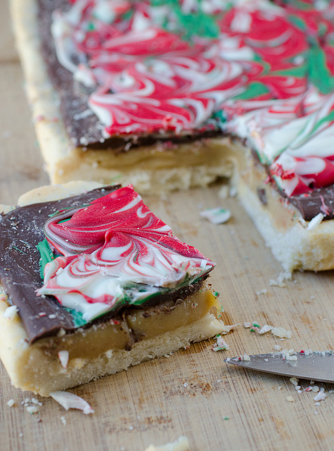 I was surprised to see powdered sugar listed in the crust ingredients, and was very pleased with the subtle sweet results. This crust was a perfect base to the thick caramel-y filling, allowing the flavor to stand out. And although the chocolate topping had a bit of a snap to it, I just loved this entire combination.