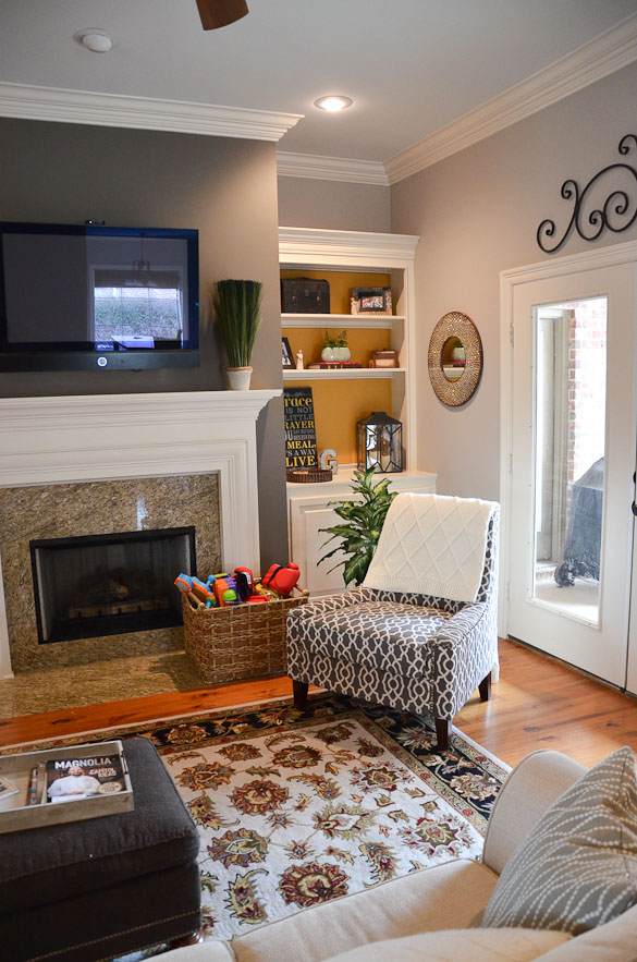 Today, I am giving you a peek into a corner of our living room where our new accent chair sits. Sauder sent us their Nico Accent Chair back in February and challenged me to use my own affordable style to decorate the space around my chair.