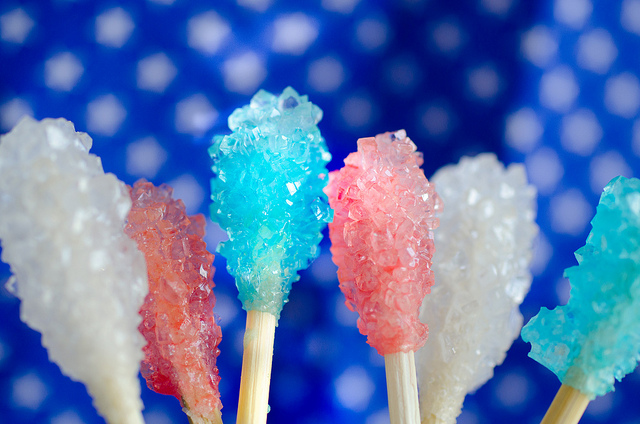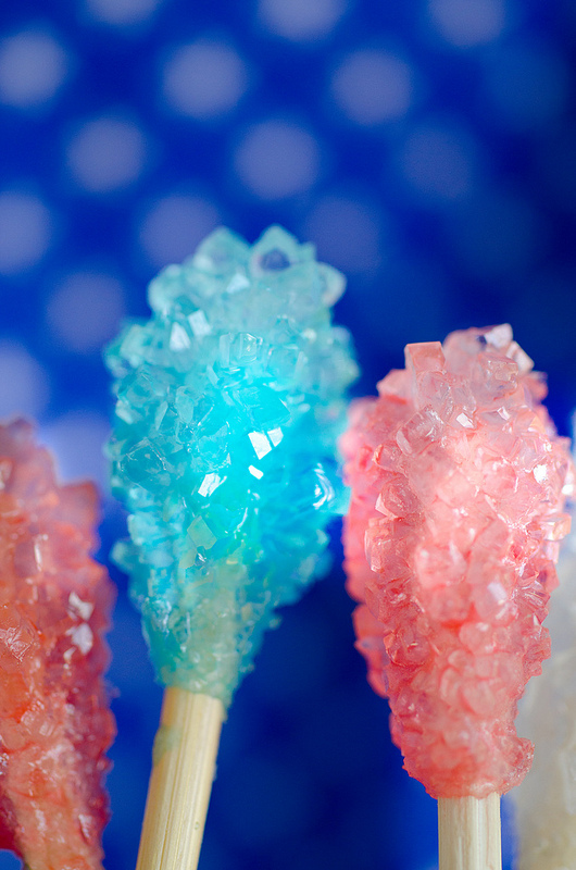 Rock candy... Does that spark some favorable memories for you? If you follow me at all on Instagram, you are probably tired of seeing my posts about rock candy. Judah and I have been making different colors for the past several weeks. Yes, weeks. Although the method is easy, the waiting time is one week before the sugar is crystallized to the bamboo sticks. Because I wanted to make the three colors of red, white, and blue for the holiday, and because I only have one pan I can dedicate to an entire week of just sitting there making rock candy, it took us at least three weeks.