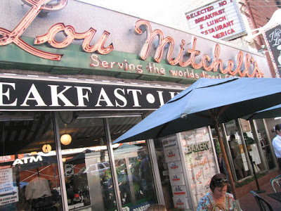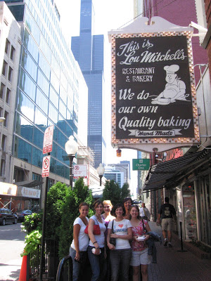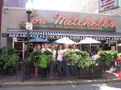 The next morning before heading home, we had breakfast at one of Chicago locals favorite breakfast stops, Lou Mitchell's. It's on Jackson near the Sears Tower and has been in business since 1923! The cool thing about Lou Mitchell's is that the restaurant has not been updated in a long time, so it has an old-school nostalgia and the staff consists of genuine Chicagoans. When you are standing in line to be seated, the hostess hands you a donut hole (or three in my case today) and a box of milk duds. Then, after breakfast/lunch, you are offered complimentary homemade vanilla ice cream!
