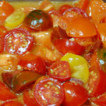 - 16 oz package multi-colored grape or heirloom tomatoes sliced in half or quartered depending on size (I found mine at Trader Joe's)