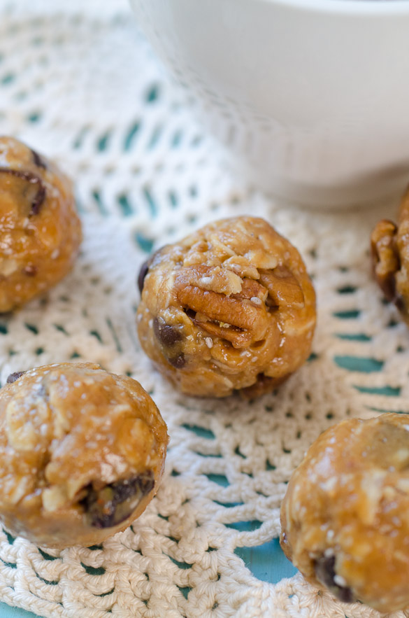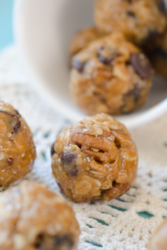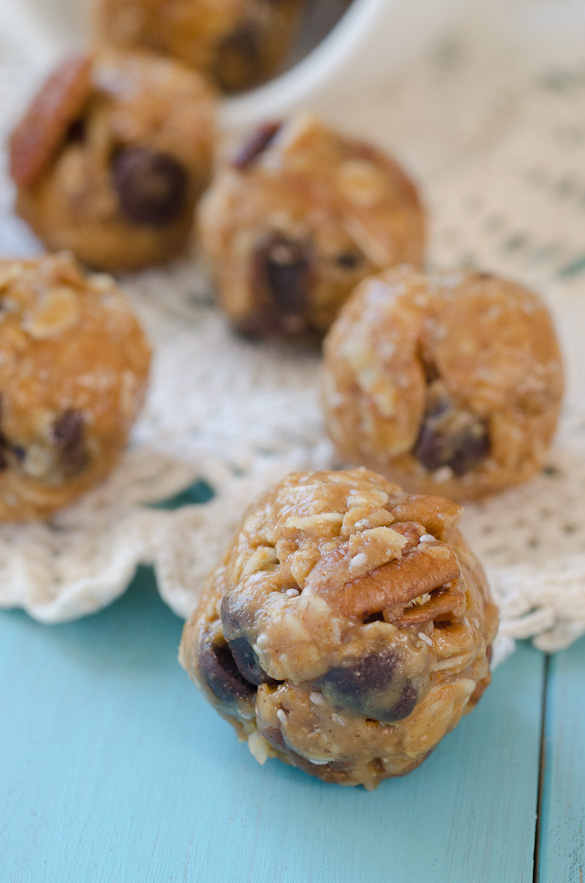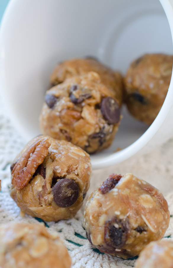 First, let's talk about these energy balls that are a great snack for you to take to the park! Not too long ago, I shared with you a Chocolate Cranberry Almond Energy Balls recipe. These are similar, but take on the flavor of your favorite Cowboy Cookies. I had been in the middle of testing out different Cowboy Cookie recipes, and then thought "I can easily make energy balls with the same flavors but healthier ingredients and less time!" So, these were born!