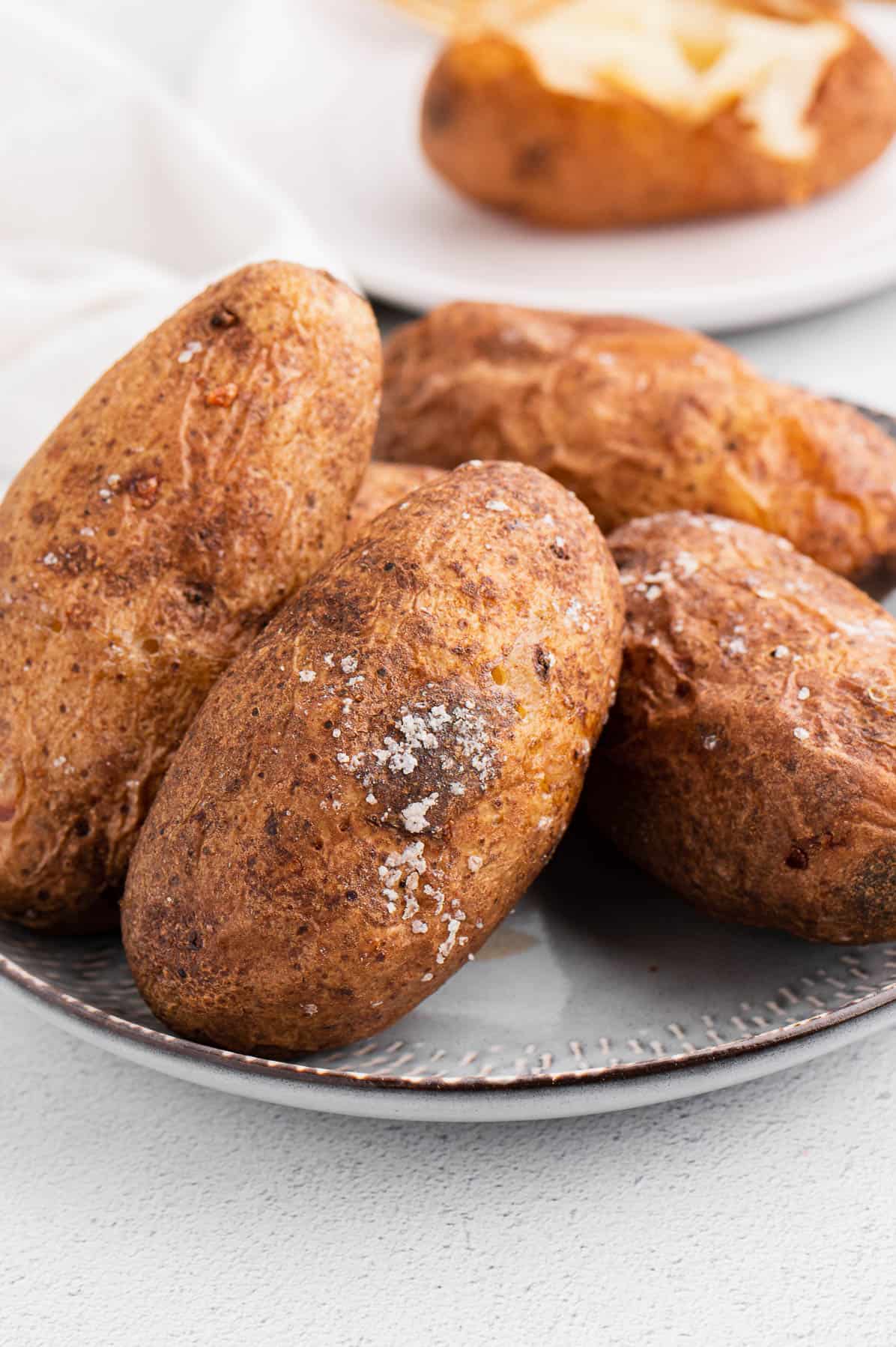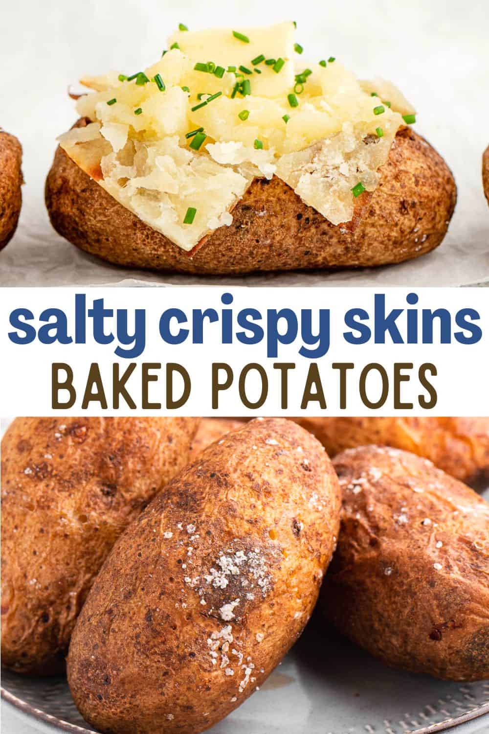 Perfect fluffy baked potatoes with a salted crispy skin. Tested countless times, this is the best way to bake potatoes in the oven!