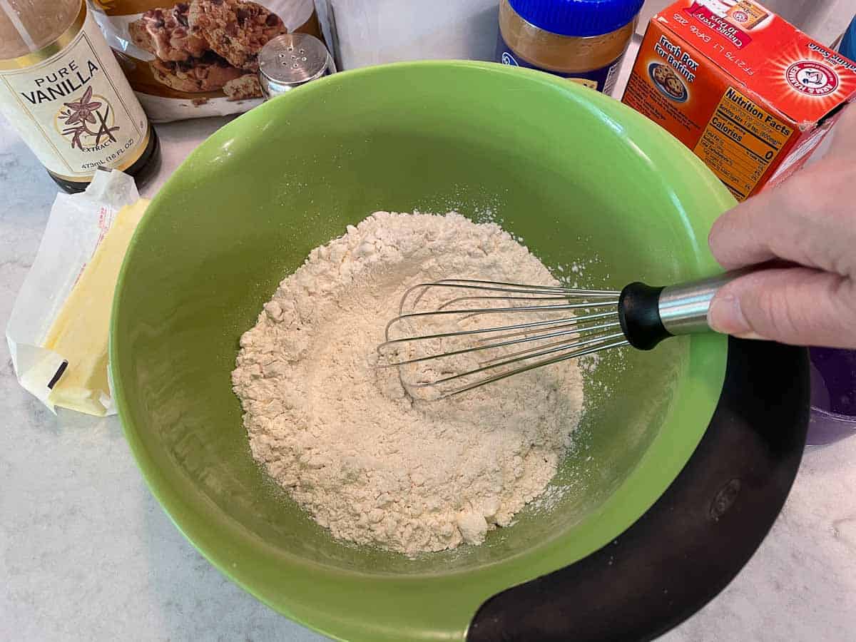 - Whisk the Dry ingredients. Combine flour, salt, and baking soda in a medium mixing bowl, then set aside.