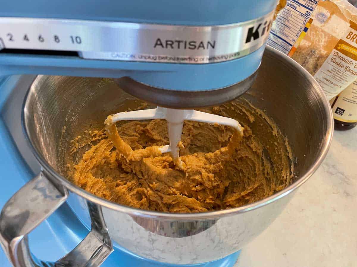 - Mix the Wet Ingredients. Using a mixer in a large bowl, beat butter with the sugars and peanut butter on medium speed until light and creamy. Then mix in the egg, vanilla, and milk.