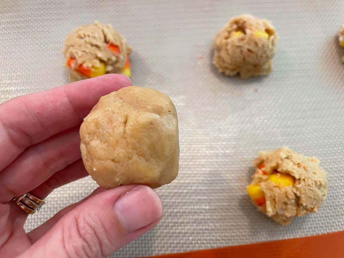 - Make sure the dough covers all candy corn pieces in each dough ball, or the candy will ooze out and melt on the cookie sheet.
