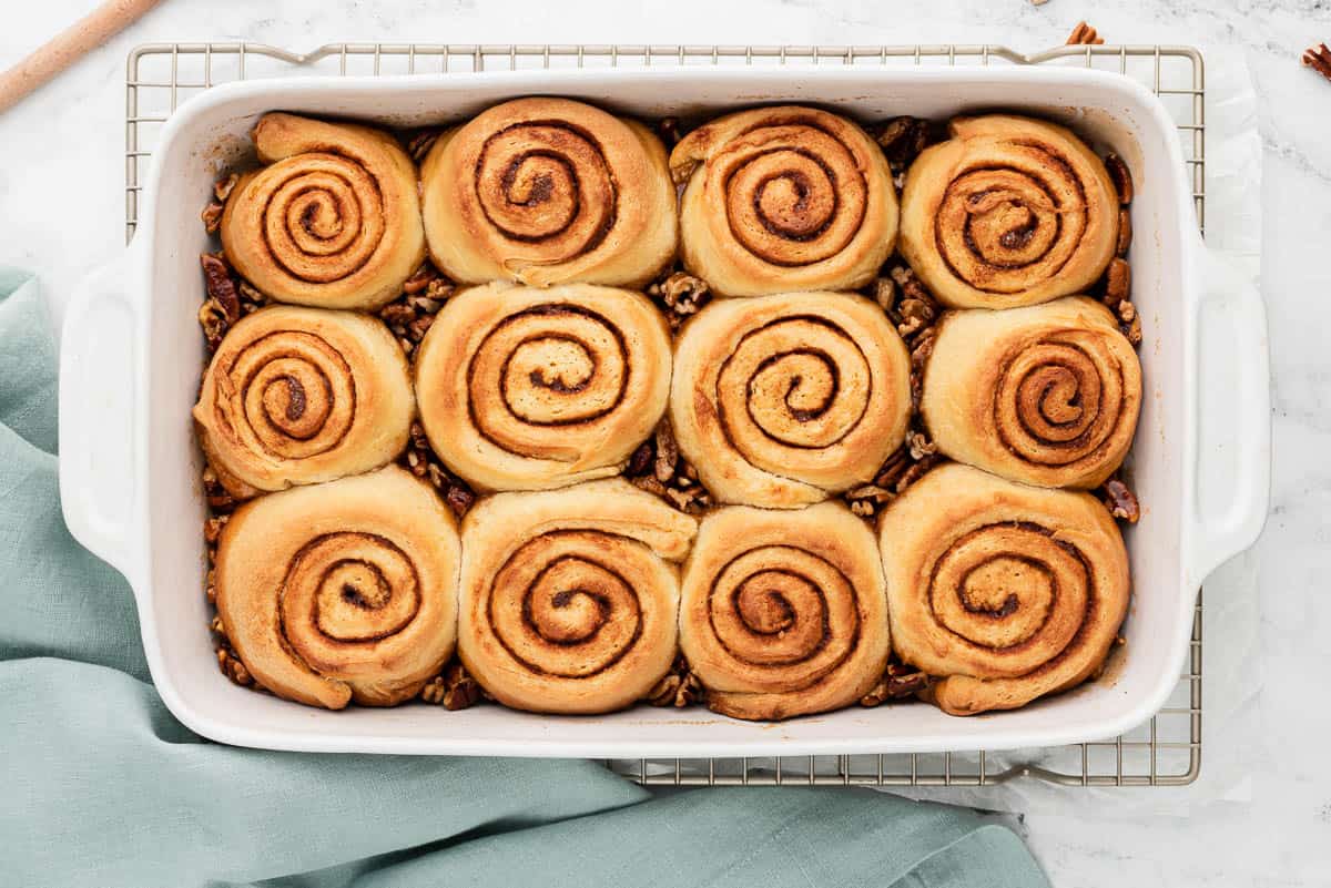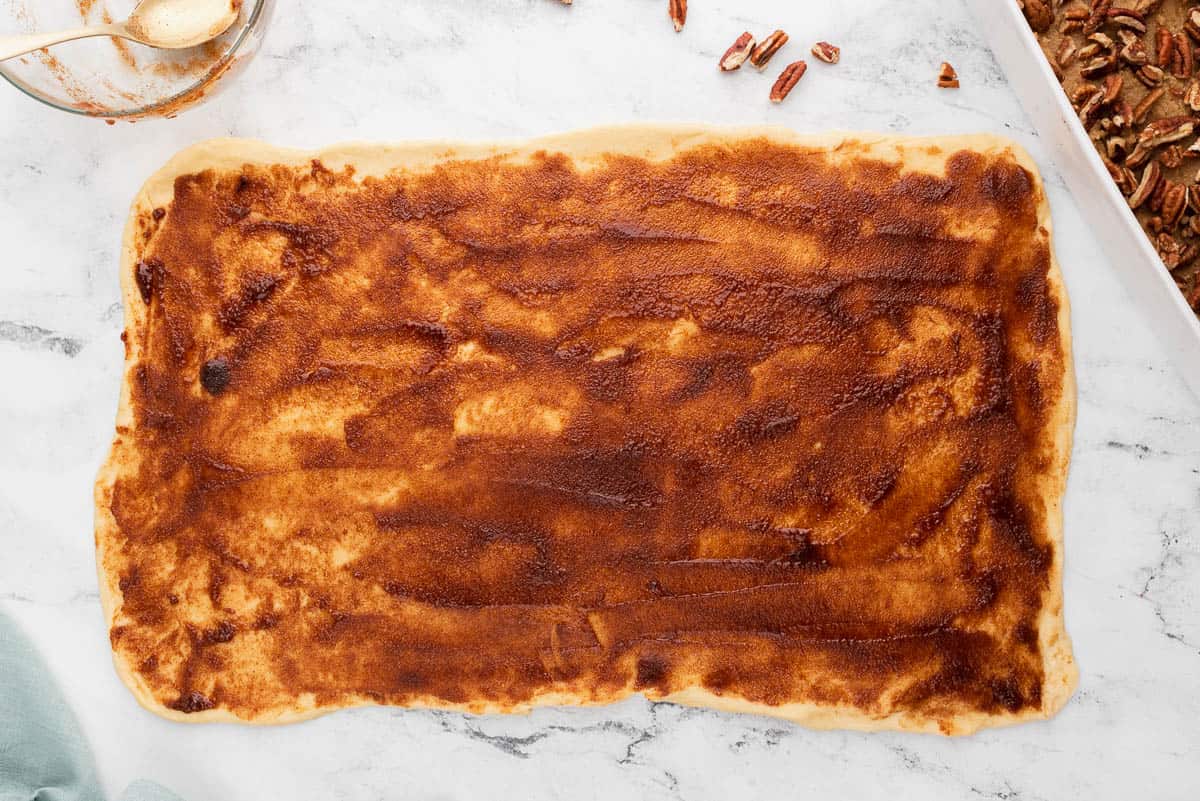 Scroll to the recipe card at the bottom of this post for the step-by-step on how to make pecan cinnamon rolls. The general steps are as follows: