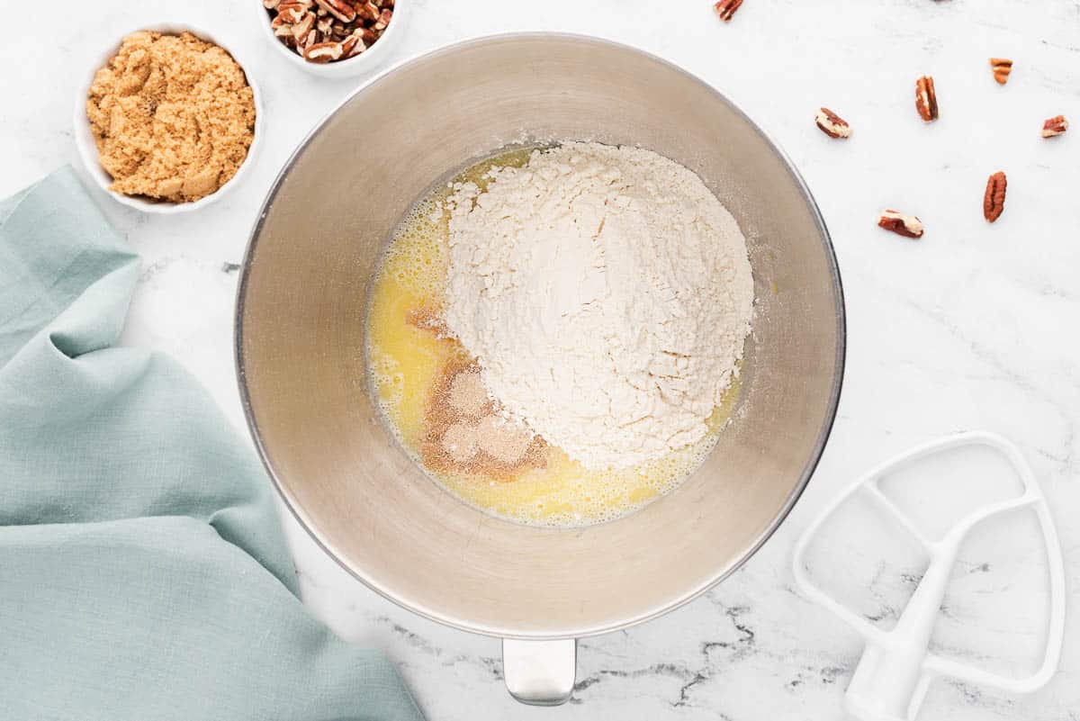 - Stand mixer with paddle attachment and dough hook (or knead with hands), or use a hand held mixer
