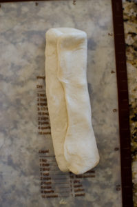 - Turn the dough out onto a slightly oiled work surface or pastry mat. Divide the dough into 8 equal dough balls. Working with one portion of dough at a time and keeping the rest covered with a clean kitchen towel, roll the dough ball into a 4x8-inch rectangle.