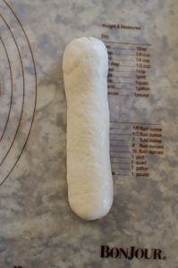 - Pinch all seams shut and gently roll to shape into a log. Set on the lined baking sheet and cover lightly with another clean kitchen towel. Repeat with the remaining 7 dough balls.