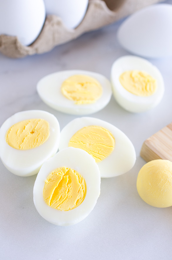 This is the best recipe for hard boiled eggs. These perfect hard boiled eggs create a beautiful yellow yolk with no green ring every time. We also include our easy tips for how to peel hard boiled eggs.