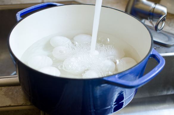 - Add cold water until eggs are covered by about ½ to 1 inch.